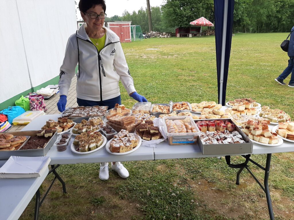 Dziękujemy również panom Marcinowi Gręda z GOKS i S w Płotach,oraz Jackowi Rafińskiemu za prowadzenie spikerki.Panu Adamowi Aniuksztys- p.o Dyrektora Gminnego Ośrodka Kultury i Sportu w Płotach.Podziękowanie dla pani Reginy Mąkowskiej za prowadzenie pięknego tańca. Panu Andrzejowi Kania z Wyszomierza serdecznie dziękujemy za stoły, ławy i namiot,które dostarczył własnym transportem.Dzięki temu w tym upale mieliśmy się gdzie schronić. Dziękujemy też naszym koleżankom za wspaniałe ciasta i pyszną kawę. Pani Kazi Radeckiej za smaczny smalec i kiszone ogóreczki.Wszystkie wymienione wyżej osoby pracowały w ramach wolontariatu i za to serdeczne podziękowania i brawa.