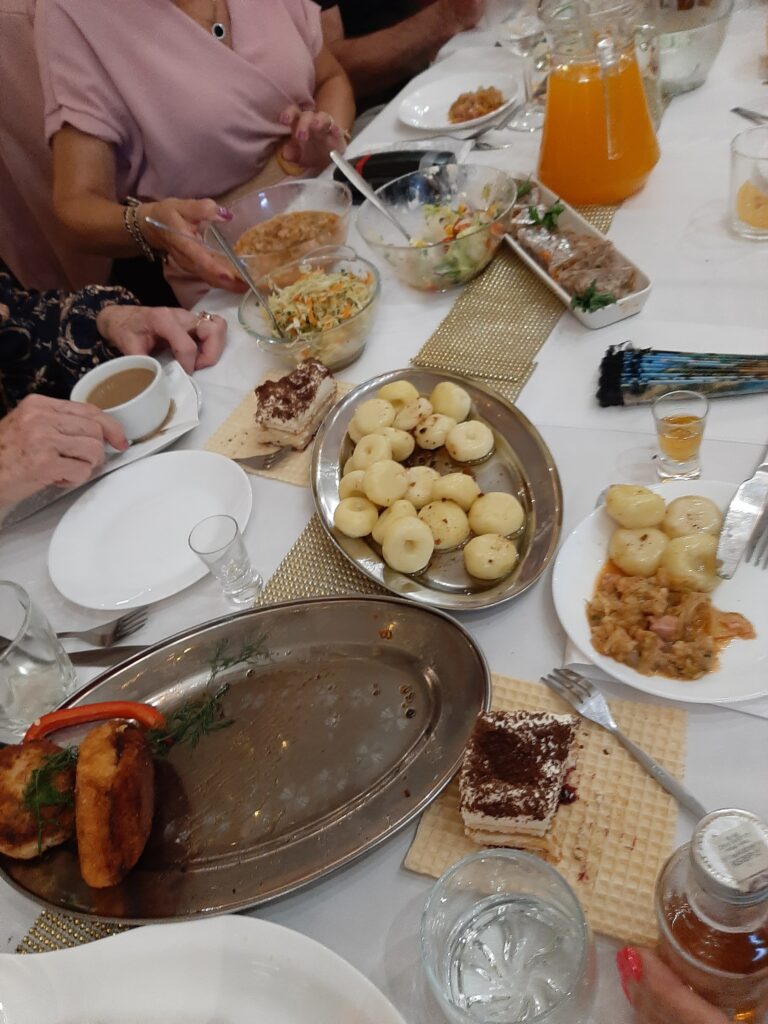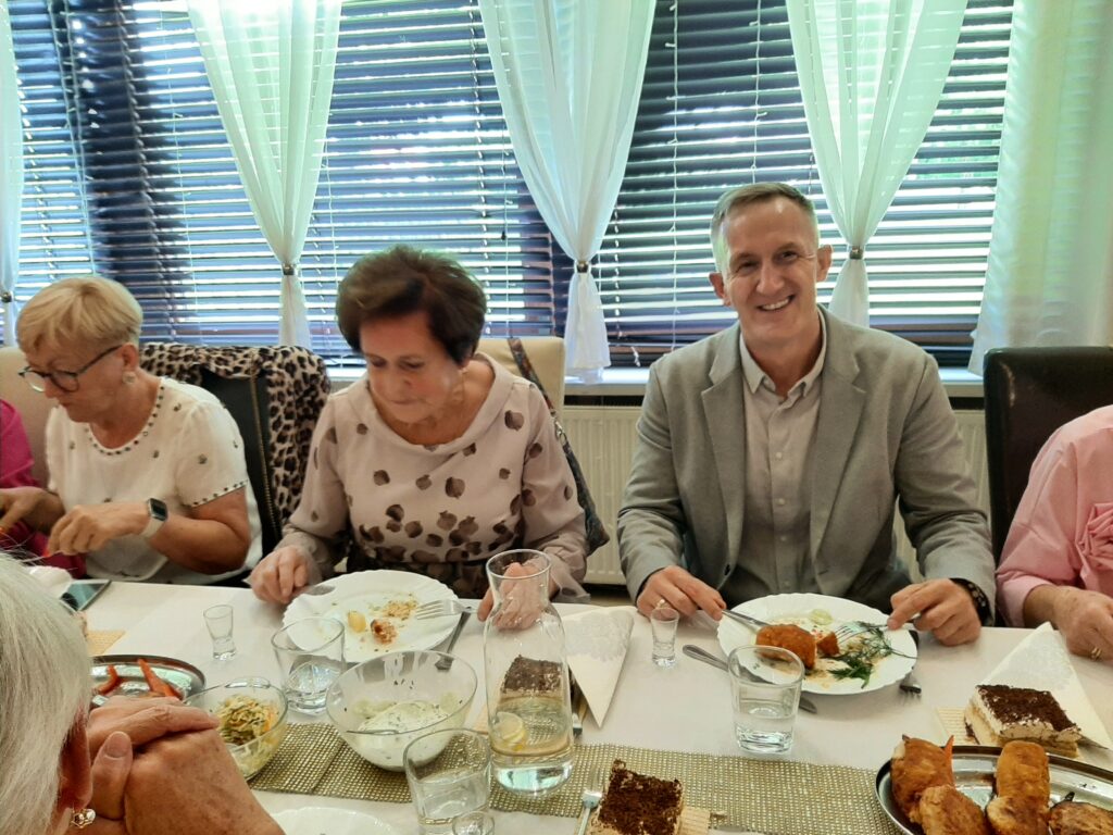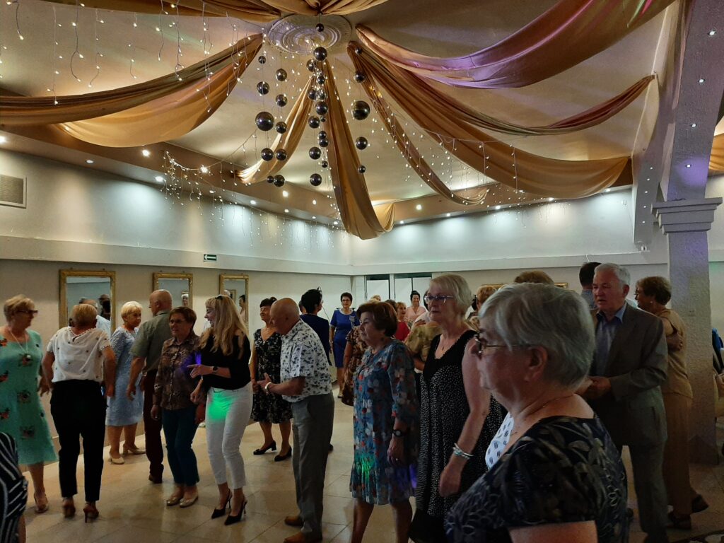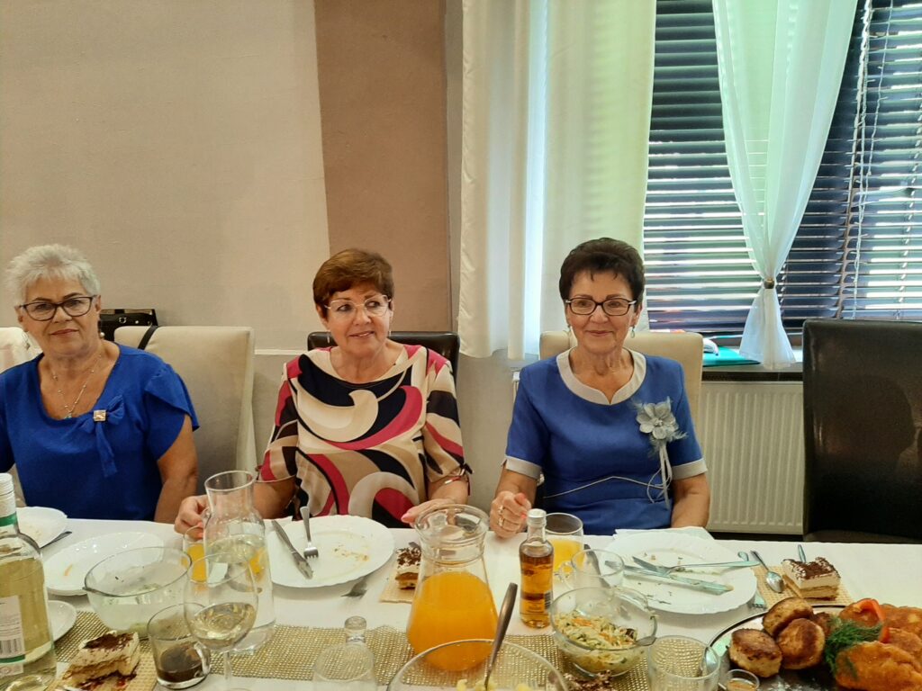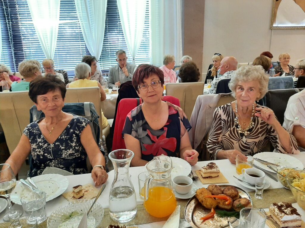 Panie w wyśmienitych strojach i fryzurach, panowie dostojni. Stoły zastawione suto przez obsługę Sali u Uli.Pięknie udekorowana sala sprawiała wrażenie miłego swojskiego miejsca, gdzie człowiek się dobrze czuje. Na wstępie przywitaliśmy Burmistrza Pana Michała Wiatra, który wkroczył na salę z ogromnym bukietem kwiatów z uśmiechem na ustach.Powiedział wiele miłych słów,obiecał pomoc w każdym zakresie. Złożył nam życzenia dalszych spotkań w tak miłym gronie. Z kolei prezes Basia Mucha, przywitała nas serdecznie,wspomniała kilka słów o realizowaniu planów przyjętych do końca wakacji. Wszyscy weseli,roześmiani i pełni nadziei,po spożyciu smacznego posiłku wyruszyliśmy na parkiet, gdzie dalej skutecznie bawił nas Pan Artur Konior.I tak dotrwaliśmy do zakończenia uroczystości.