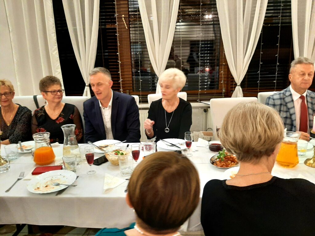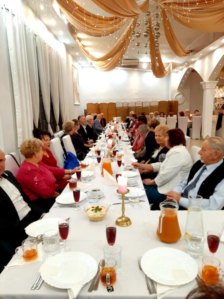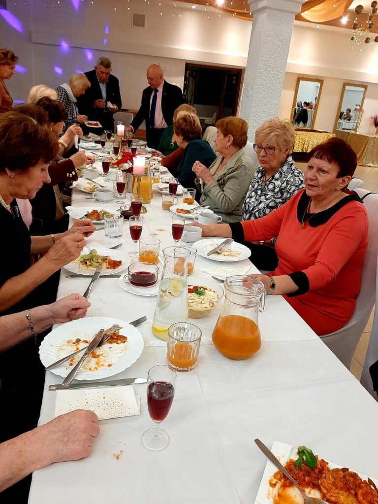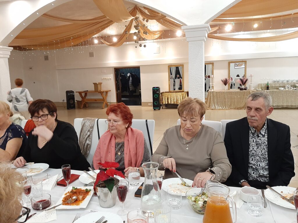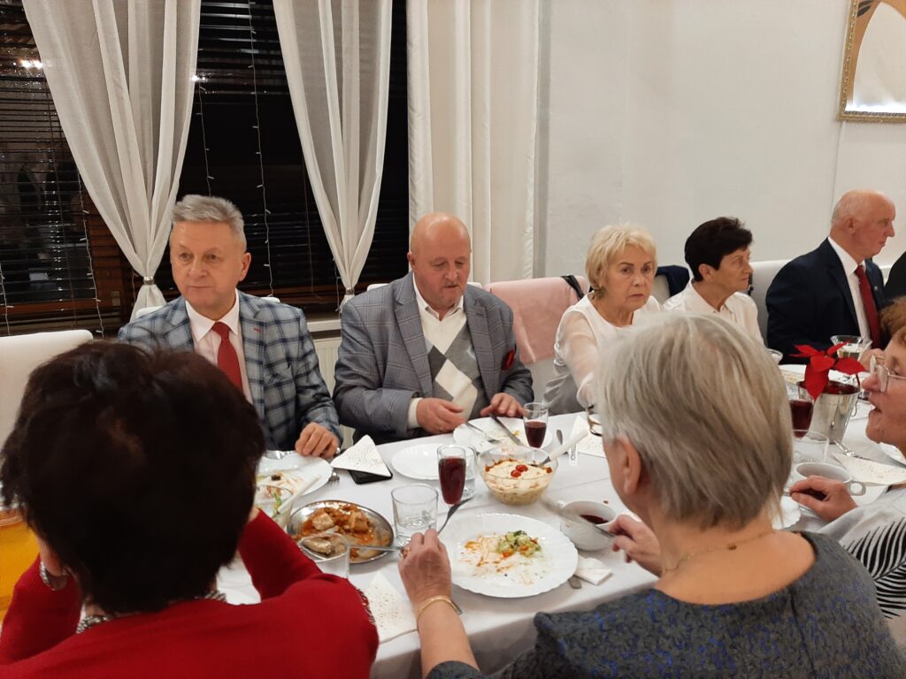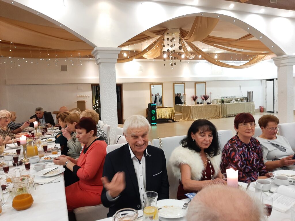 I tak było dzisiaj.16 grudnia 2024.Spotkanie i dzielenie się opłatkiem. Byli zawsze nam przyjaźni zaproszeni goście.Był Pan Burmistrz,przewodniczący poszczególnych stowarzyszeń,Przewodniczący Rady Seniorów. Atmosfera bardzo uroczysta. Kiedy dzieliliśmy się opłatkiem słyszano tylko życzenie zdrowia.No bo tylko tego nam trzeba. Mamy przeżyte szczęśliwe lata i chęć na życie. Każdy z nas ma za sobą bagaż doświadczeń,którym się dzieli. Mamy swoje rodziny, które nas wspomagają. I którymi my dalej się opiekujemy.W tle kolędy,a przy stołach gwar. Widać to szczęście w oczach obecnych.I tak jest zawsze.Po spożyciu wyśmienitych potraw, rozpoczęło się kolędowanie. Zrobił się nastój bardzo świąteczny.Chwile bez bólu,narzekań.Nawet wszelkie dolegliwości ustały.Wracaliśmy do domów zadowoleni,spełnieni i z nadzieją na jutro.