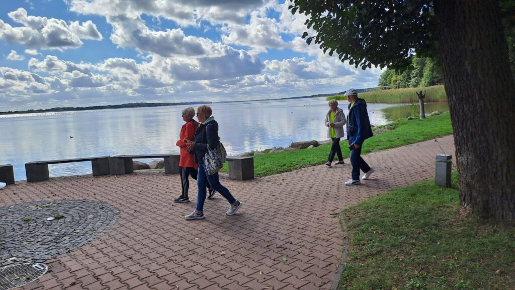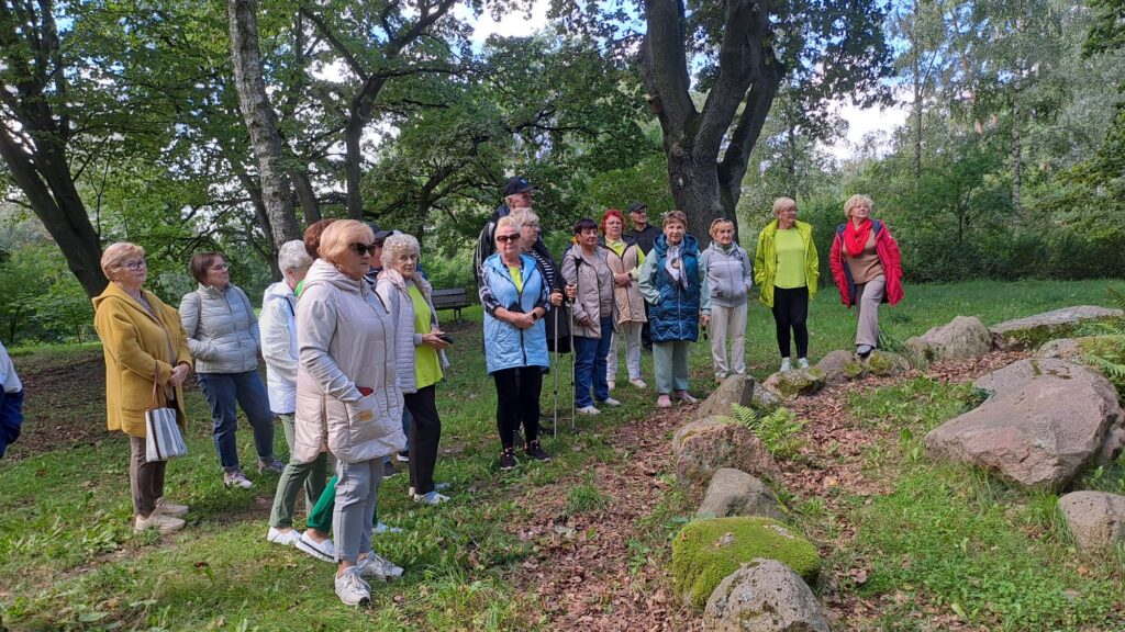 We wtorek 23.09.2025 r. na zaproszenie naszych przyjaciół z UTW Stargard wybraliśmy się bardzo liczną grupą w kierunku Stargardu a mianowicie nad piękne jezioro Miedwie do Morzyczyna aby tam się spotkać z grupą „Wędruj z Nami”. Wspólnie rozpoczęliśmy zwiedzanie od Lapidarium w Morzyczynie, które jest położone na niewielkim wzgórzu i jest częścią Parku Pamięci. Utworzono je na miejscu dawnego zniszczonego w 1945 r. cmentarza ewangelickiego, gromadząc w nim ocalałe fragmenty nagrobków i płyt cmentarnych. Dla całej grupy był to moment zadumy i wspomnień, niejeden z nas pamięta te czasy.