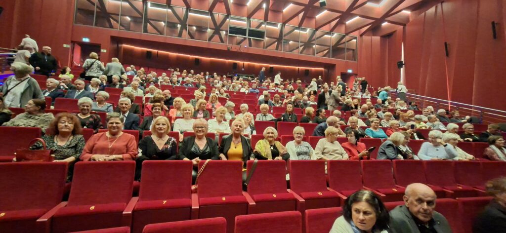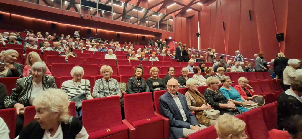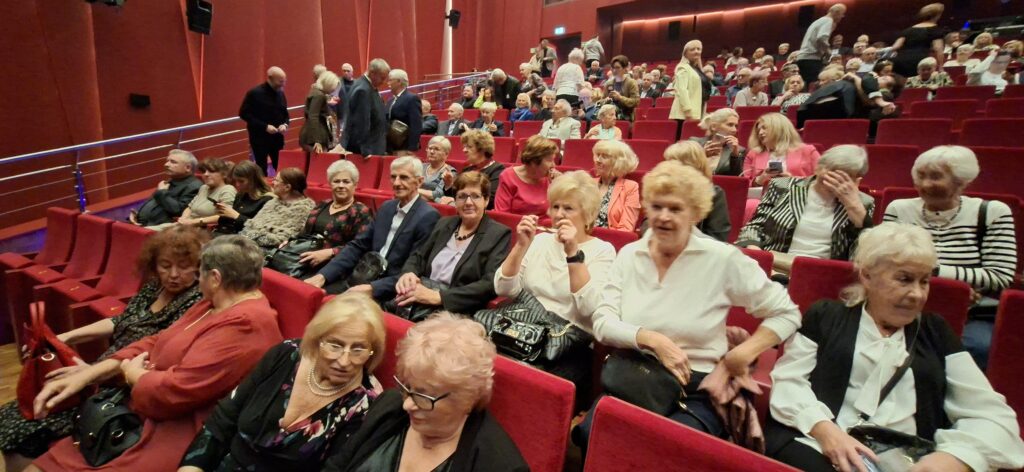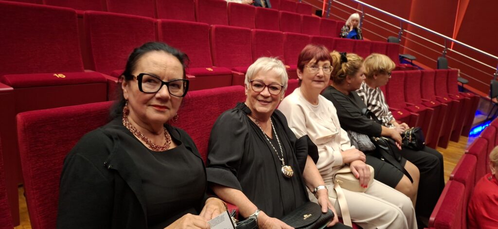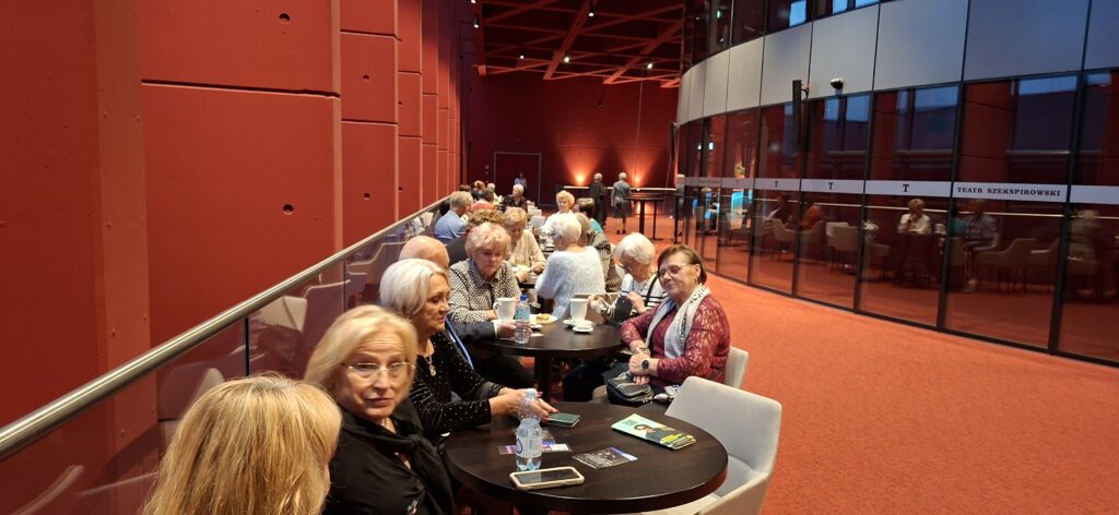 Dnia 10.10.2025r nasza grupa słuchaczy Uniwersytetu Trzeciego Wieku pod opieką Danusi Rzeteckiej wybrała się wspólnie do teatru, aby spędzić czas w kulturalnej atmosferze. Po przybyciu na miejsce mieliśmy chwilę, aby napić się kawy, zjeść przepyszny sernik i porozmawiać w miłym towarzystwie.