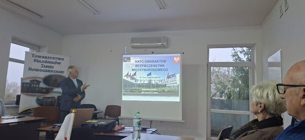 Z okazji Dnia Niepodległości Towarzystwo Miłośników Ziemi Nowogardzkiej dnia 10.11.2025r. zorganizowało spotkanie w sali konferencyjnej ( przy biurze UTW ), którego tematem było ,, NATO – gwarancją bezpieczeństwa narodowego”. Wykład prowadził Generał Broni Zdzisław Goral.