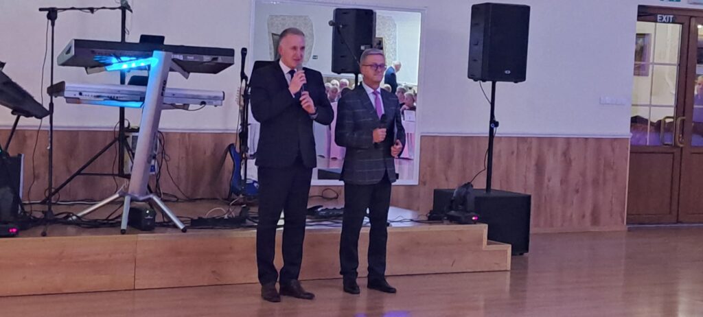 Kolejnym punktem programu było wręczenie statuetek ,,Zasłużony Senior”, którymi uhonorowano osoby tj: Pan Ryszard Zagórski, Pan Tadeusz Łukaszewicz oraz Pan Jerzy Tębłowski, szczególnie aktywne i oddane lokalnej społeczności. W części artystycznej publiczność mogła podziwiać występ zespołu Uniwersytetu Trzeciego Wieku AdHock w przepięknym walcu angielskim. W tańcu liniowym zaprezentował się zespół ,, Roztańczony Senior „ze Związku Emerytów i Rencistów i ich zespół wokalny, wprowadzając nas w radosną atmosferę. Seniorzy bawili się wspaniale.