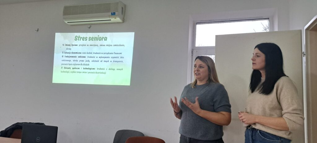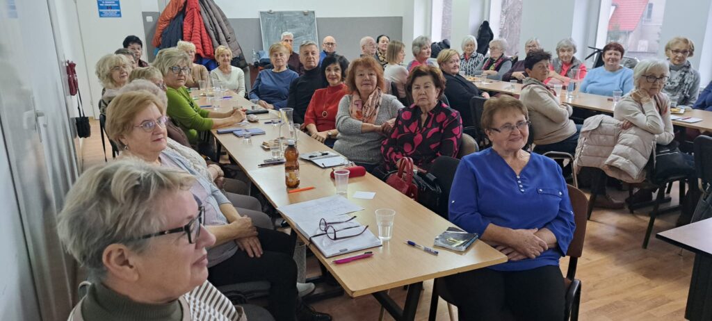 W dniu 20.11.2025r. odbyło się kolejne spotkanie słuchaczy Uniwersytetu Trzeciego Wieku, podczas którego uczestnicy wysłuchali wykładu poświęconego tematyce radzenia sobie ze stresem oraz budowania zdrowych, praktycznych nawyków w życiu codziennym. Wykład prowadziły Panie Psycholożki- Pani Ewelina Mańkowska i Pani Agata Tarczykowska-Mikita, specjalistki w dziedzinie psychologi i rozwoju osobistego.