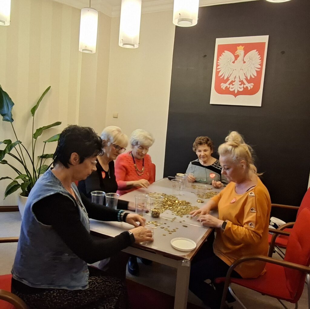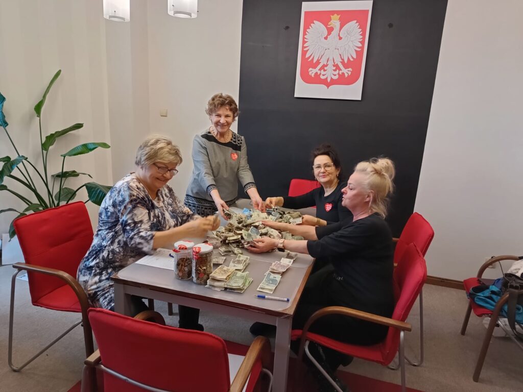 Podczas finału Wielkiej Orkiestry Świątecznej Pomocy prowadzona była zbiórka pieniędzy do puszek oraz liczne licytacje, które cieszyły się dużym zainteresowaniem mieszkańców. Koleżanki z UTW brały udział w liczeniu zebranych puszek WOŚP. Liczono zarówno banknoty, jak i gotówkę w bilonie, którego było dużo i nie było łatwo go przeliczyć. Mimo zmęczenia do późnych godzin wieczornych dałyśmy radę – cel został osiągnięty.