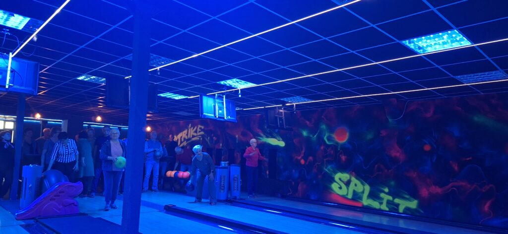 17 marca 2026 roku o godzinie 16:00 seniorzy naszego Stowarzyszenia Uniwersytetu Trzeciego Wieku spotkali się w kręgielni, by wspólnie spędzić czas w atmosferze sportowej rywalizacji i dobrej zabawy. Wydarzenie rozpoczęło się od podziału uczestników na trzy dziewięcioosobowe drużyny: zarząd oraz dwie pozostałe grupy.