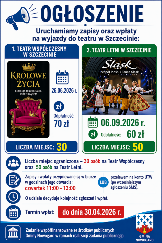 Uruchamiamy zapisy oraz wpłaty na wyjazdy do teatru w Szczecinie: